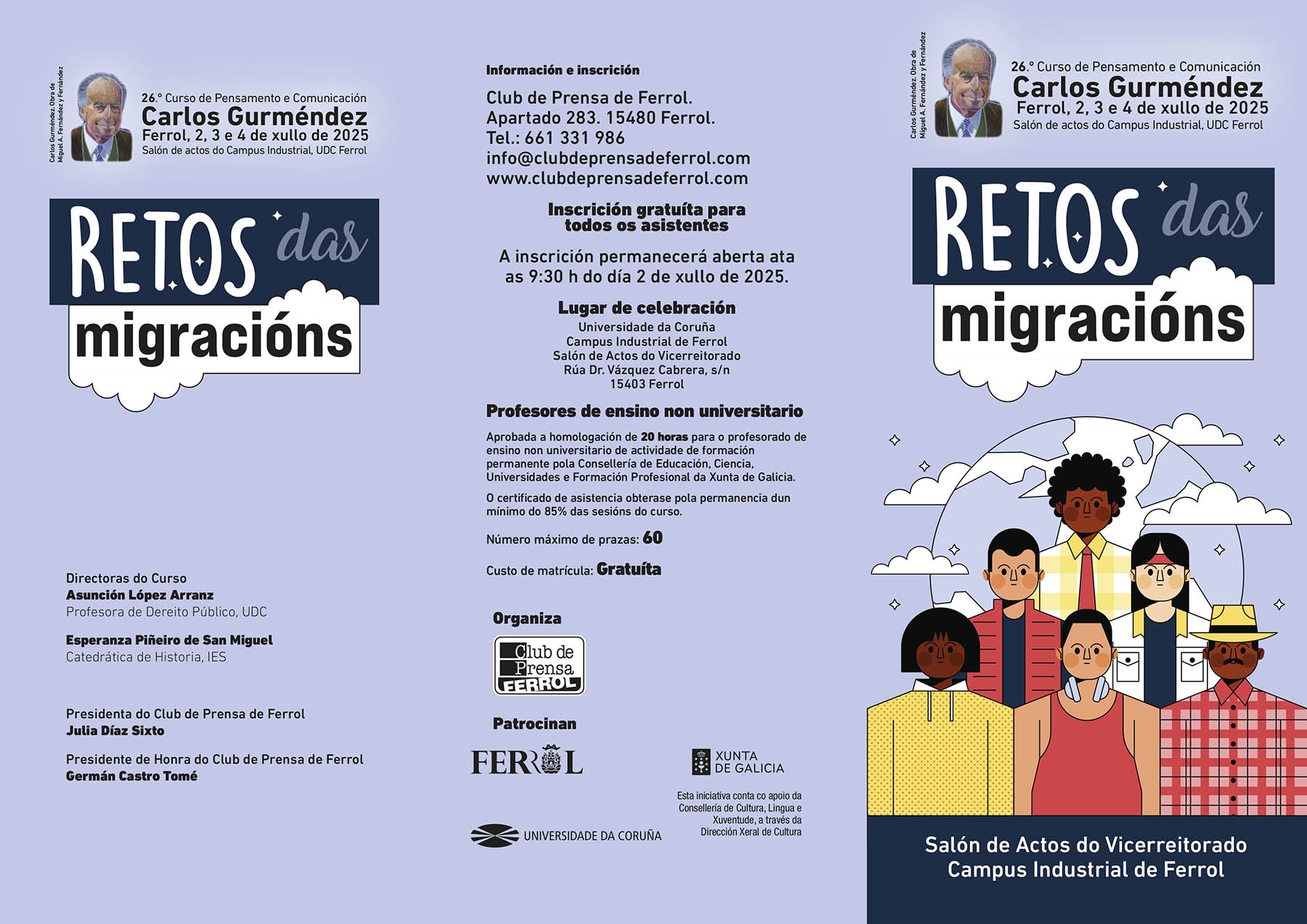 “Retos das Migracións“ será o tema da 26ª edición do Curso de Pensamento e Comunicación Carlos Gurméndez que terá lugar no Campus Industrial de Ferrol os días 2, 3 e 4 de xullo